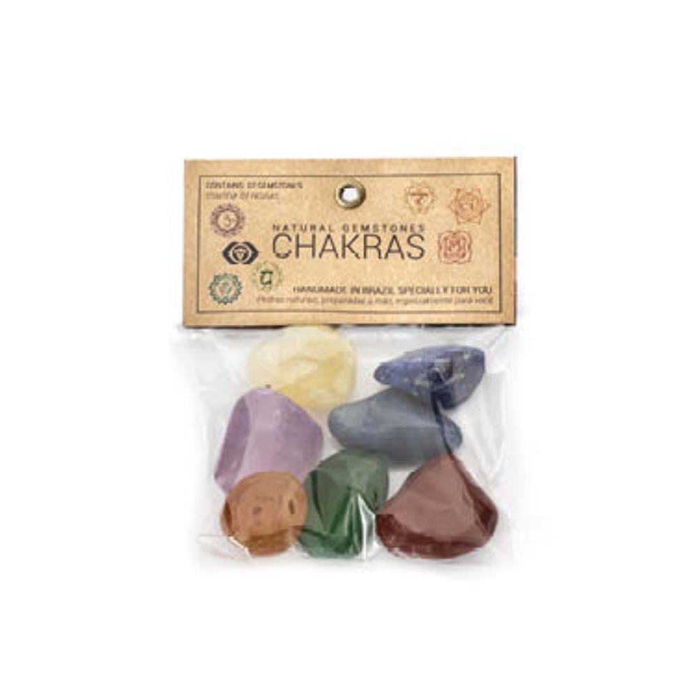 conjuntos de pedras alinhadas aos centros energéticos do corpo, ideais para equilíbrio e bem-estar.