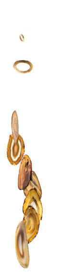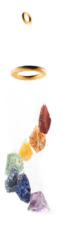 Os mobiles em pedra natural unem arte, movimento e energia. Sensíveis à circulação do ar, criam jogos de luz e cor com os cristais, espalhando leveza e vibração positiva por todo o ambiente.